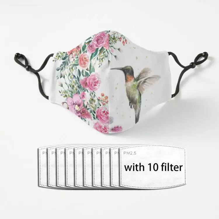 Маска для лица с колибри и цветами, унисекс, для взрослых