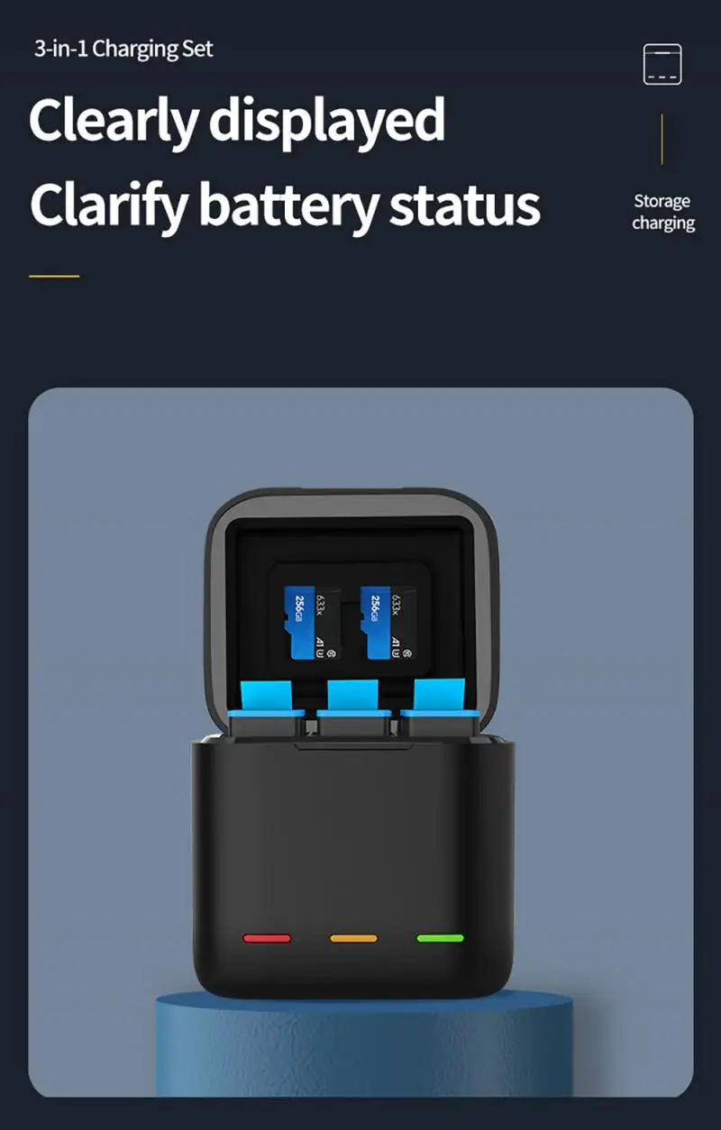 【 3-канальное зарядное устройство 】 3-канальное мини USB зарядное устройство для GoPro Hero 9 черного цвета, может одновременно заряжать до 3 батарей, также предназначен в качестве ящика для хранения ваших батарей.