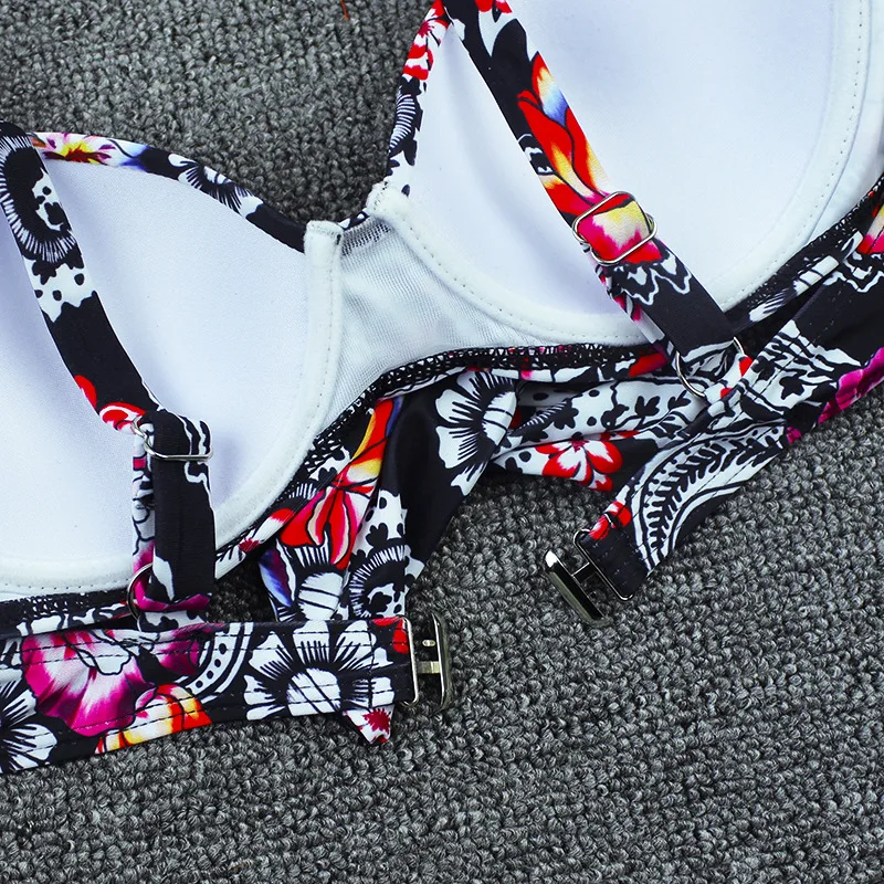 Тип купальника: комплект бикини Пол: для женщин Стиль: 2021 Новый Материал: полиэстер Стиль бюстгальтера: мягкий Тип узора: печать Талия: высокая талия Посылка: бюстгальтер-1 шт. трусы-1 шт.