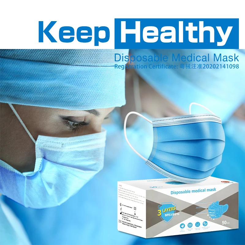 Маски медицинские одноразовые со ртом для лица, трехслойные, дышащие, противотуманные