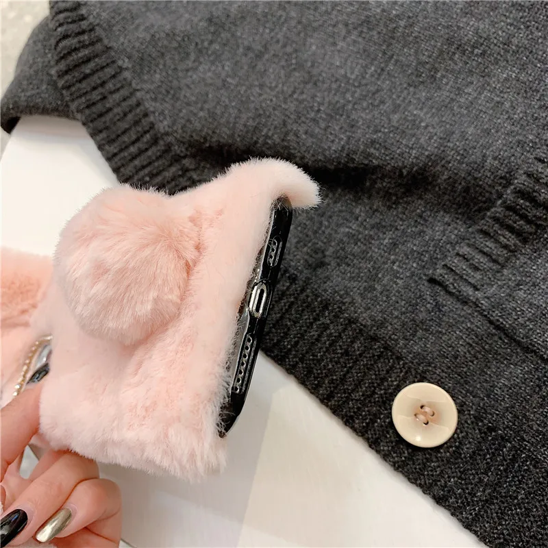 Пушистый Плюшевый чехол для телефона с кроличьими ушками для iPhone...