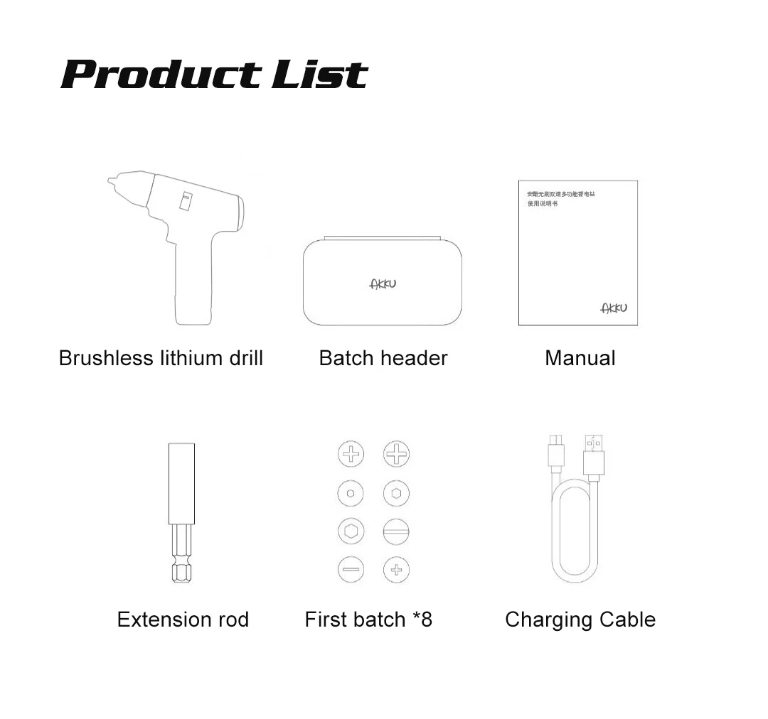 Электрическая дрель Xiaomi AKKU, бесщеточная многофункциональная ак...