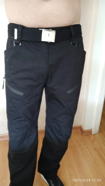 Ткань 60% cotton 40% polyester растягивается, очень удобно, Воду не пропускает. Брал для велика, ветер не продувает, для дождя подойдет. Ниже колена можно было чуть уже сделать. Карманы не особо вместительны по толщине. Брал размер L на рост 175, вес 97 кг, подошло хорошо.