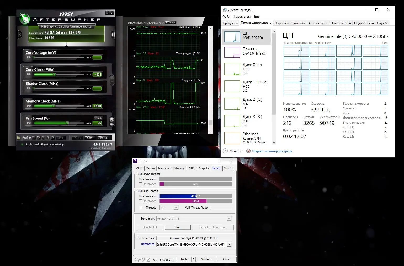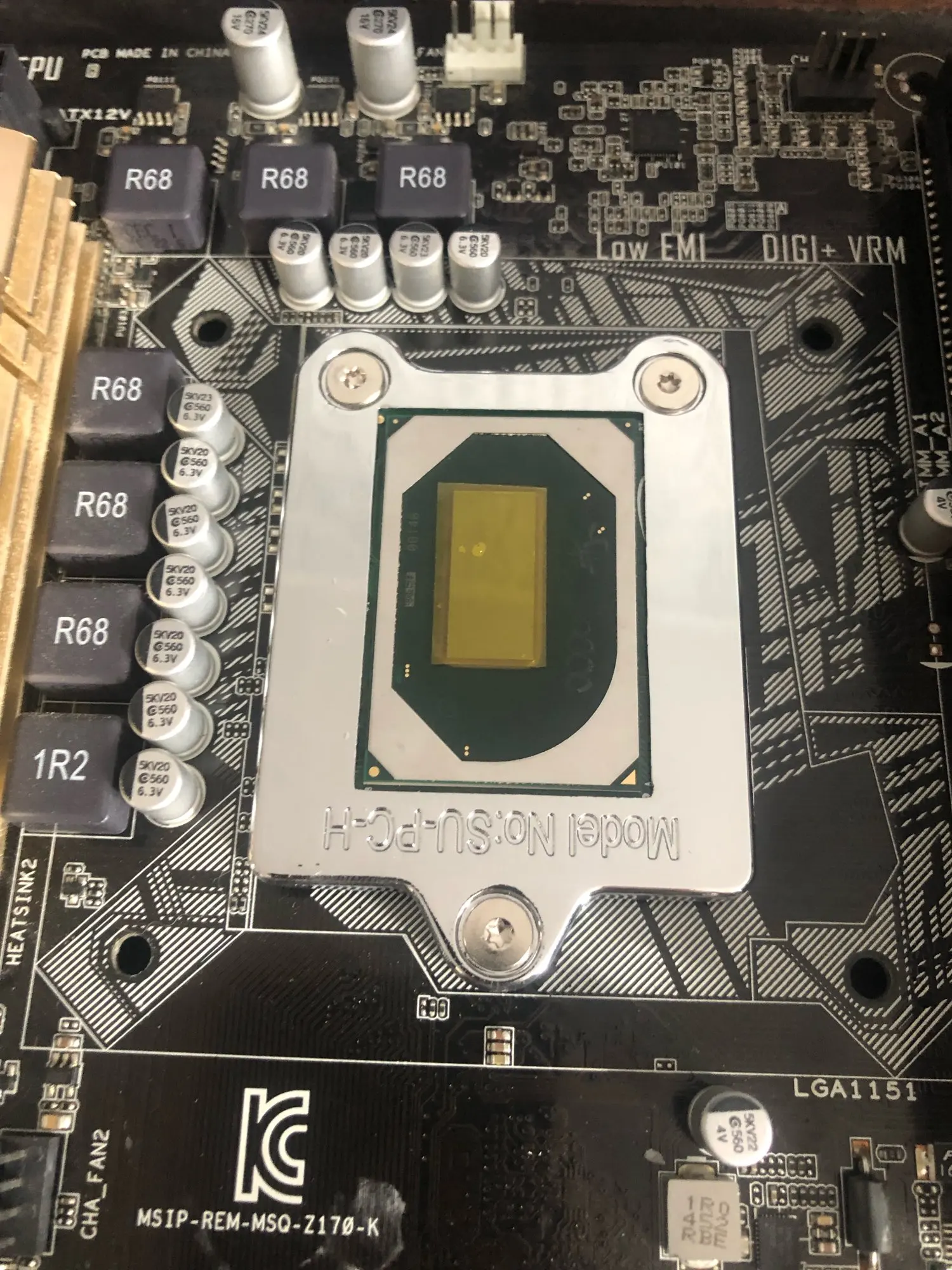 ну собственно приехал быстро, биос продавец выслал на почту, помучился с выпайкой, но эт мои проблемы. запустилось сразу, тесты прилагаю. на частоте памяти выше 2666мгц в играх нестабилен, или выкинет или синька. все кроме озу в стоке, говорят нужно напругу поднимать, тогда 3000мгц озу возьмет. сейчас не хочу этим заниматься, если в тестах то 3ггц берет, проблемы только в играх. в целом покупкой доволен. мать MSI Z270-A PRO. перед покупкой спросите у продавца потянет ваша мать или нет. Под водой очень холодный, врм слегка теплые, чипсет теплый