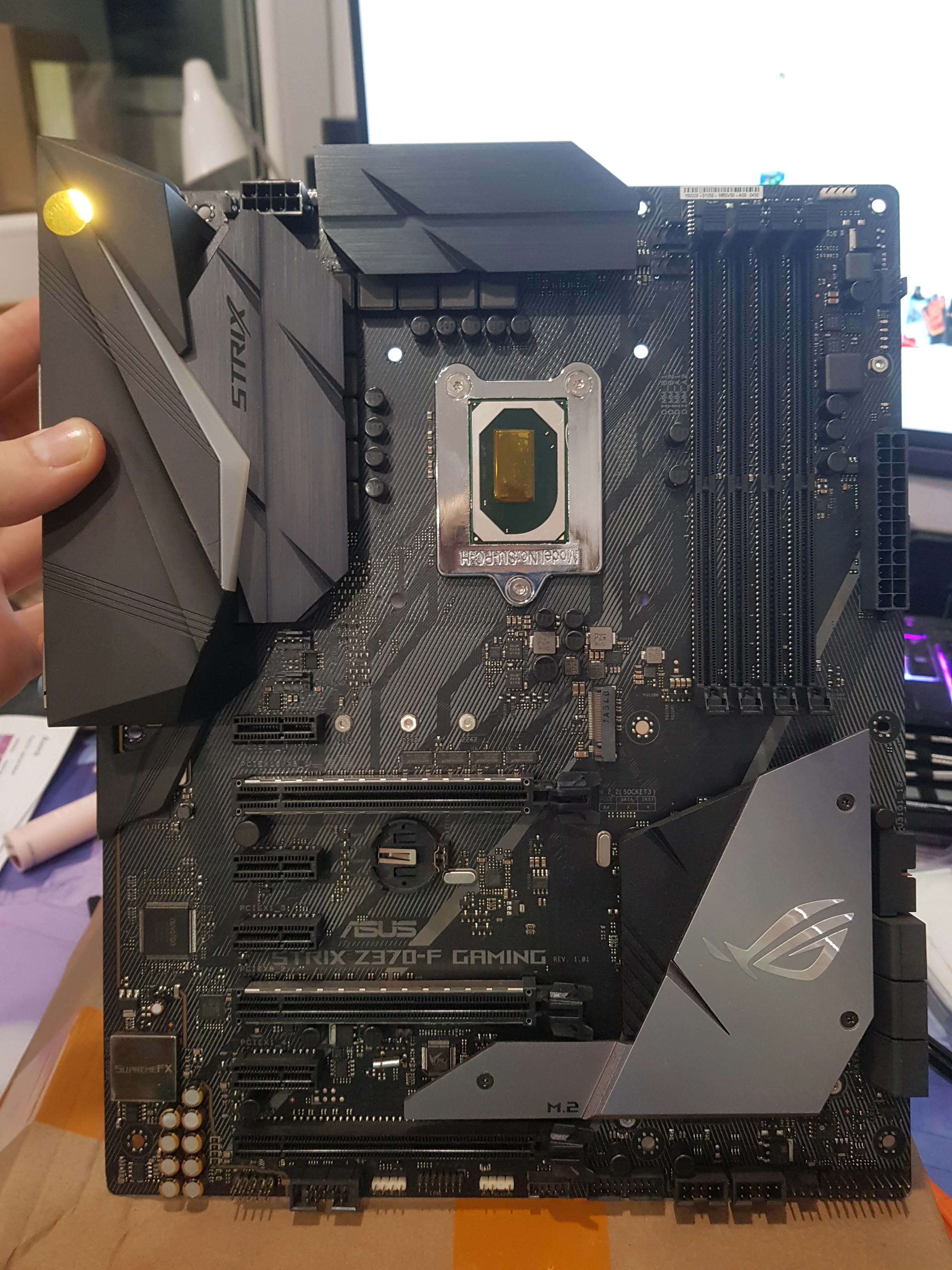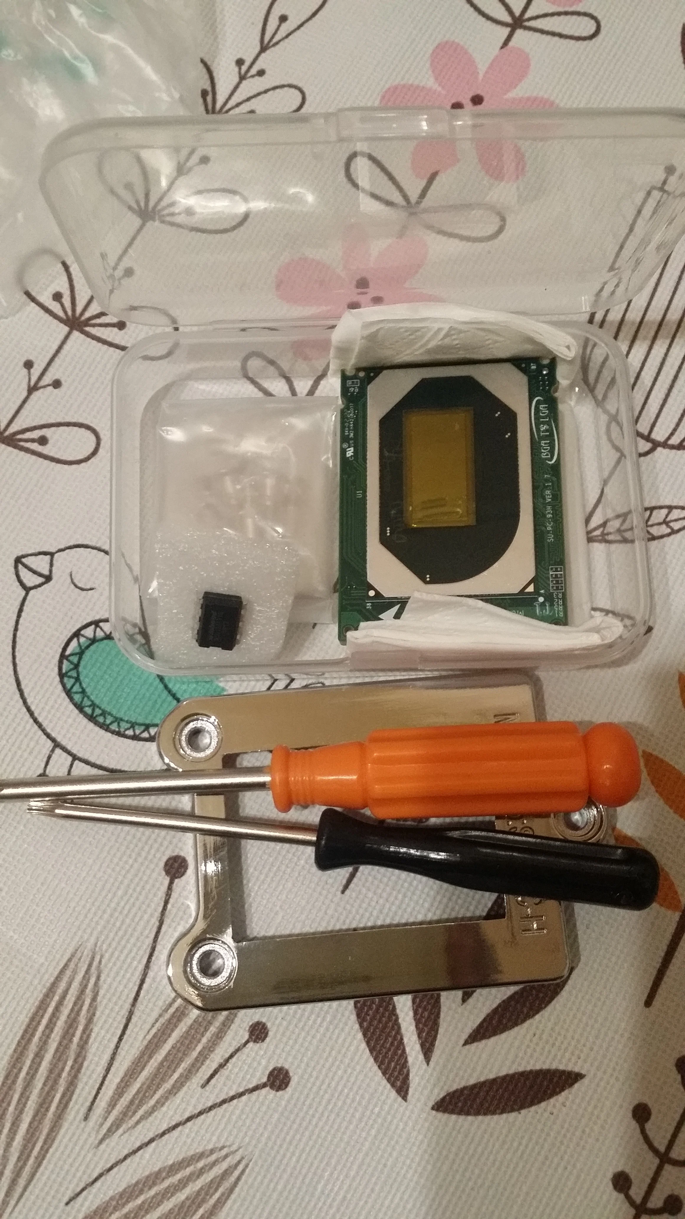 Пришел быстро. Такая блёба мутантская с двумя отвертками и креплением. Он больше обычного проца. Чтоб его поставить нужно выкручивать стандартное крепление с материнки и намертво его прикручивать на то которое идет в комплекте. Но сначала пришлось накатить биос который скинул продавец. У меня Gigabyte Z270X Ultra Gaming прошивается прямо из под винды. Охлаждение ставить страшновато было на голый кристалл, сапером себя чувствовал. Ну в итоге все запустилось и отлично работает. Память на 2600. Успел прогнать в тестах и сравнить с эталонными i9. Что и следовало ожидать, разница на уровне погрешности. Рекомендую тем кто шарит.