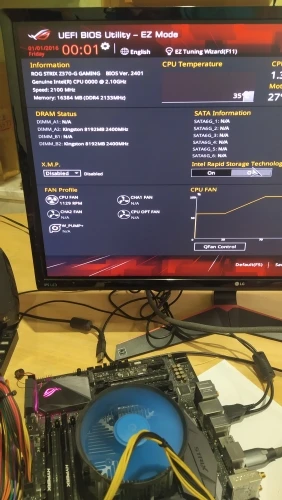 Встала не без приключений) У меня оперативка 2400 Cricial, запустилась в двухканале с 1866 частотой, 1 планка берет 2400, две вообще ни в какую, буду менять.Водяное охлаждение брал специально под проц, в нагрузке не больше 70 температура. Покупкой доволен.