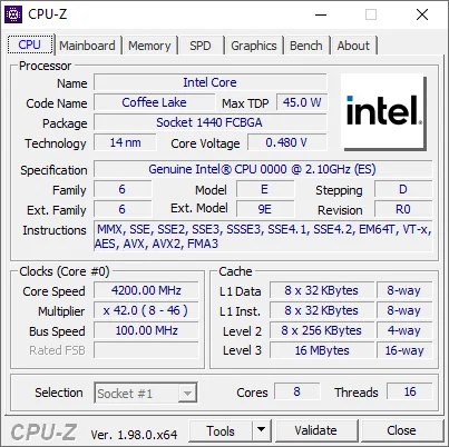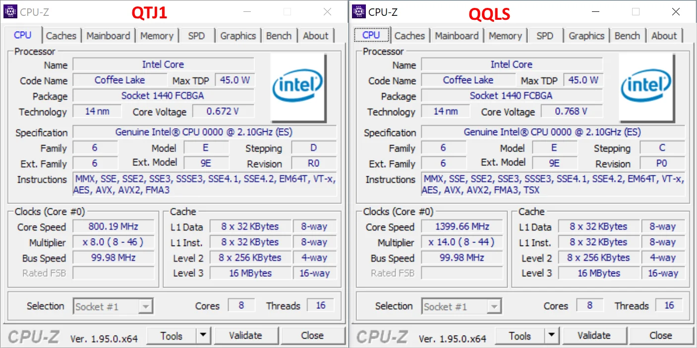 10-я COMET LAKE QTJ1 0000 2,1G 8C16T модифицированный процессор для ноутбука LGA 1151