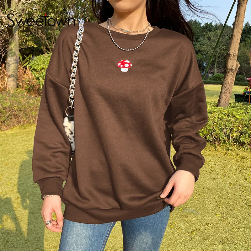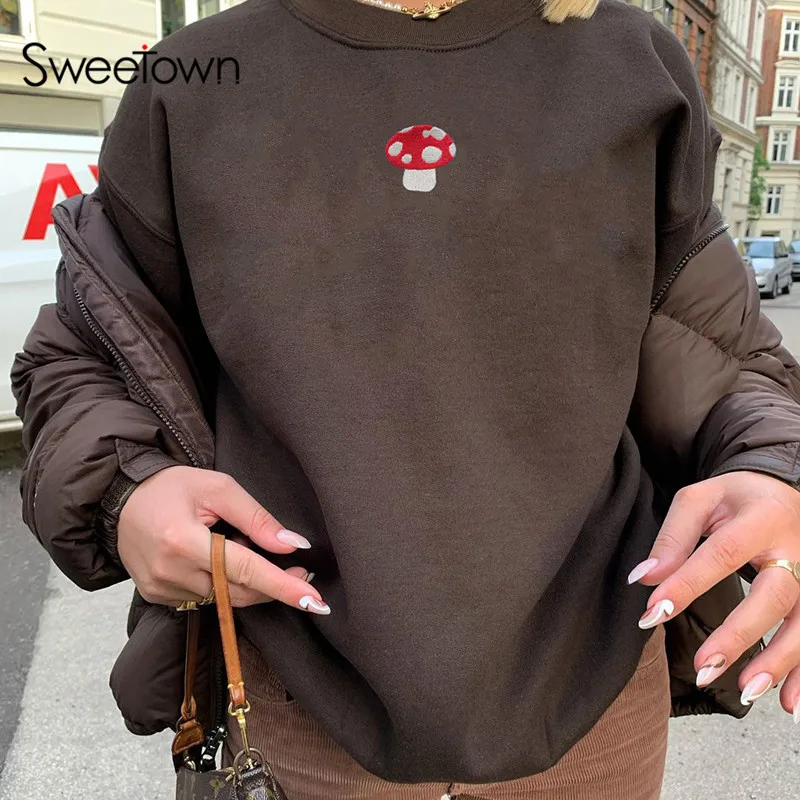 Женский свитшот с вышивкой в виде грибов Y2K, Свободный пуловер бол...