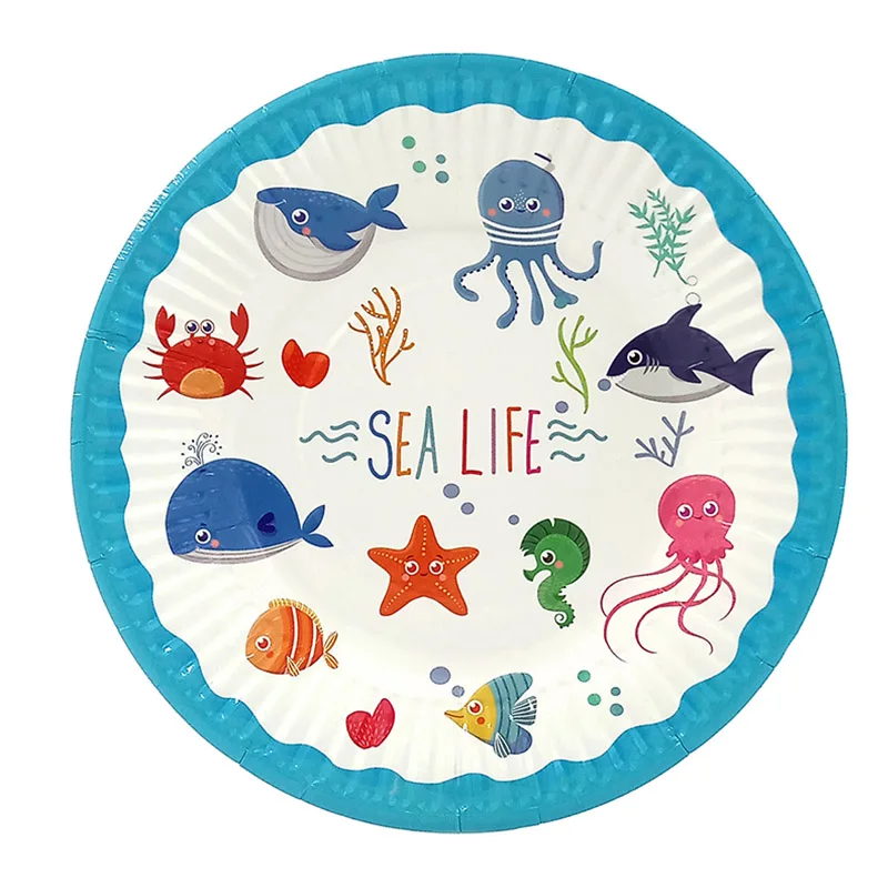 6 шт десертные тарелки с пищевую пленку для детей Морская жизнь морских животных Рыба принадлежности для тематической вечеринки одноразовая посуда