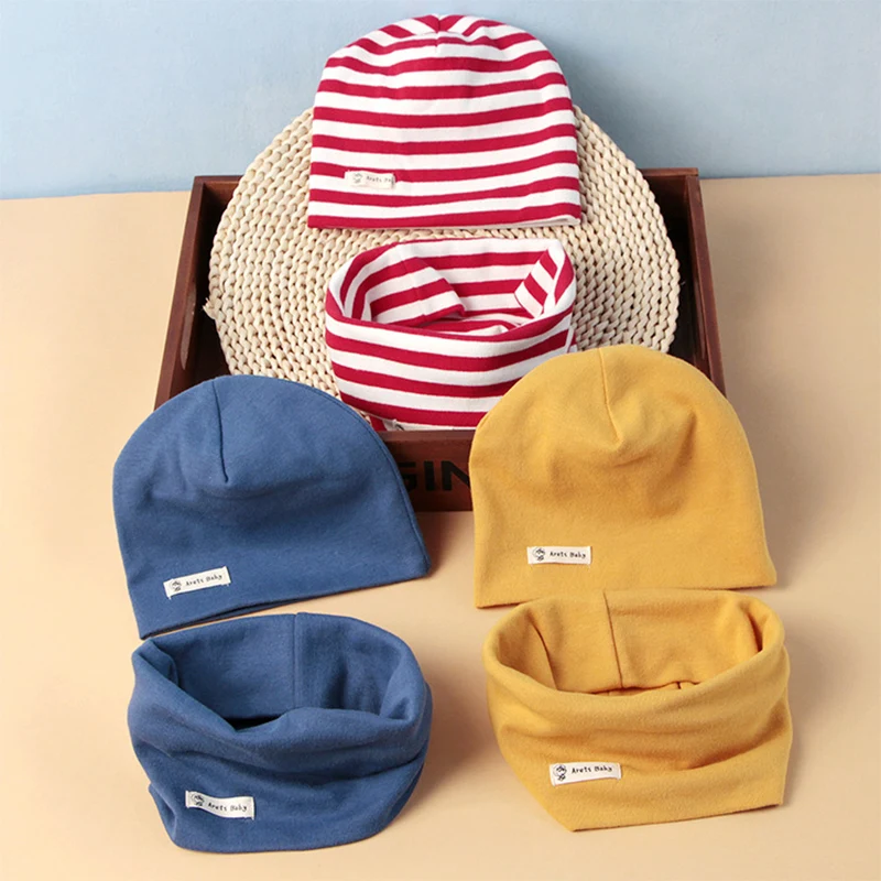 Детский комплект из шапки и шарфа, осенне-зимний теплый хлопковый комплект из шапки и шарфа, 2021