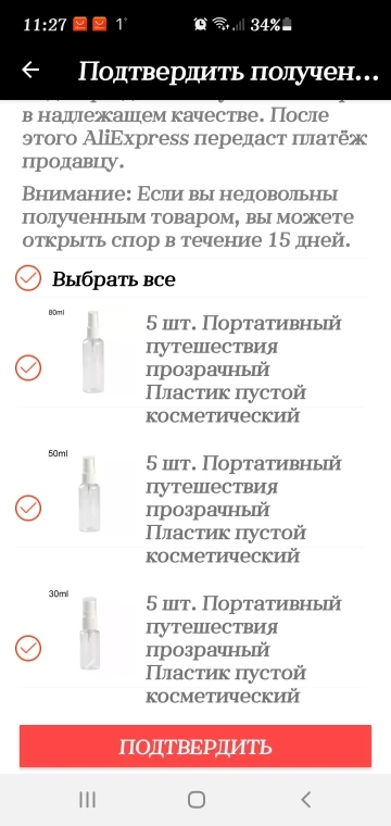 из 25 заказанных пришло всего 5, не сразу поняли это, закрыли заказ, печаль 30ml 5PCS это по идее кол штук умноженное на ск взял