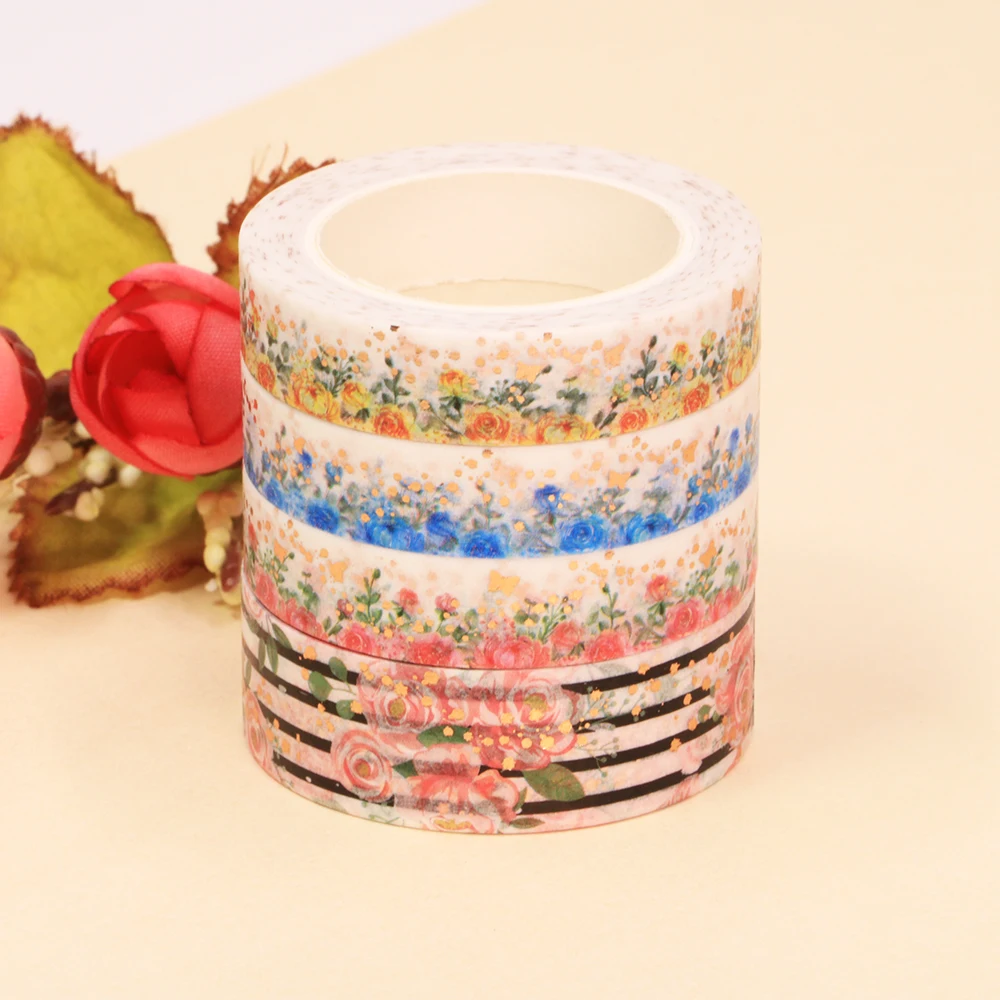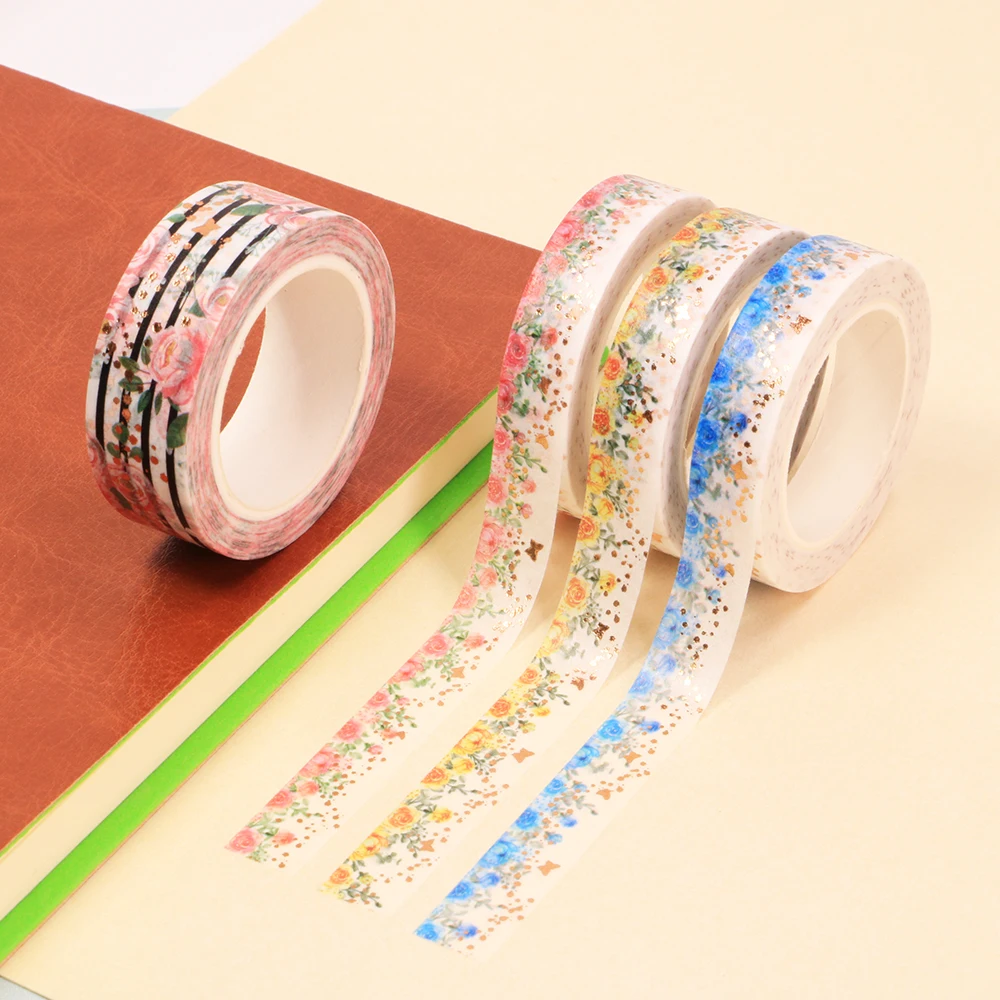 1 шт. 15 мм * 10 м фольга Алмазная с красными цветами черная декоративная Васи Лента Скрапбукинг Маскировочная лента школы и офиса принадлежности