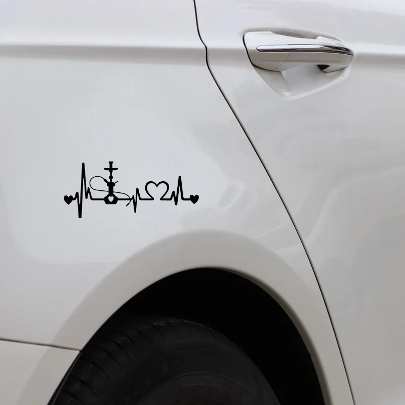 Подходит для всех видов водонепроницаемой солнцезащитной машины кальян сердцебиение спасательная Наклейка виниловая чернаясеребряная Автомобильная наклейка 14 см x 6 см
