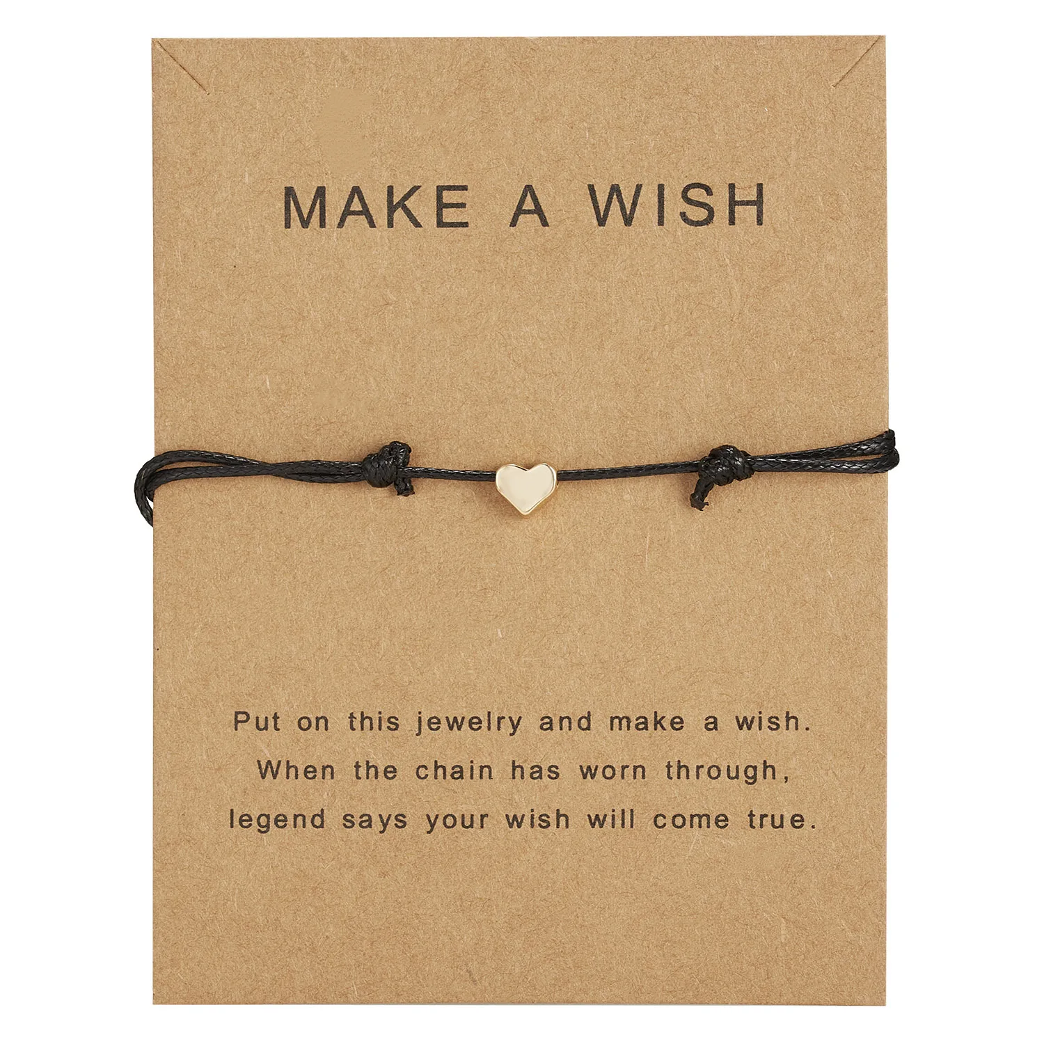 Браслет плетеный с черной веревкой для женщин и мужчин, изящные украшения с сердечками, открытки с пожеланиями дружбы, Подарочная Прямая поставка