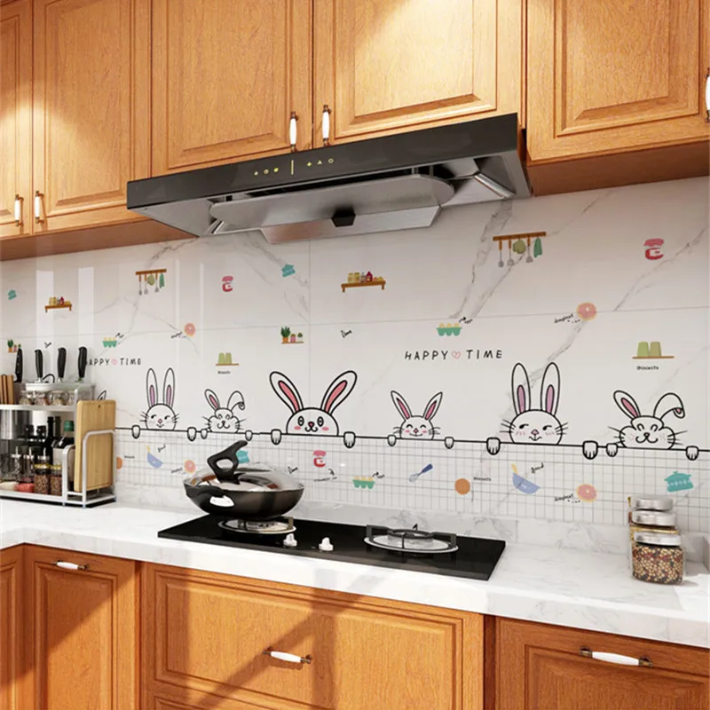 Настенные наклейки для кухни, маслостойкие прозрачные плитки для плиты, плиты, термостойкие самоклеящиеся Мультяшные обои