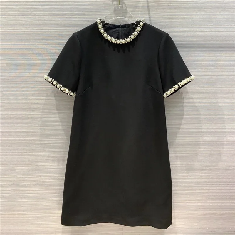 Новинка 2021, роскошное черно-белое платье с жемчужными стразы, подиумное элегантное женское приталенное вечернее платье с коротким рукавом