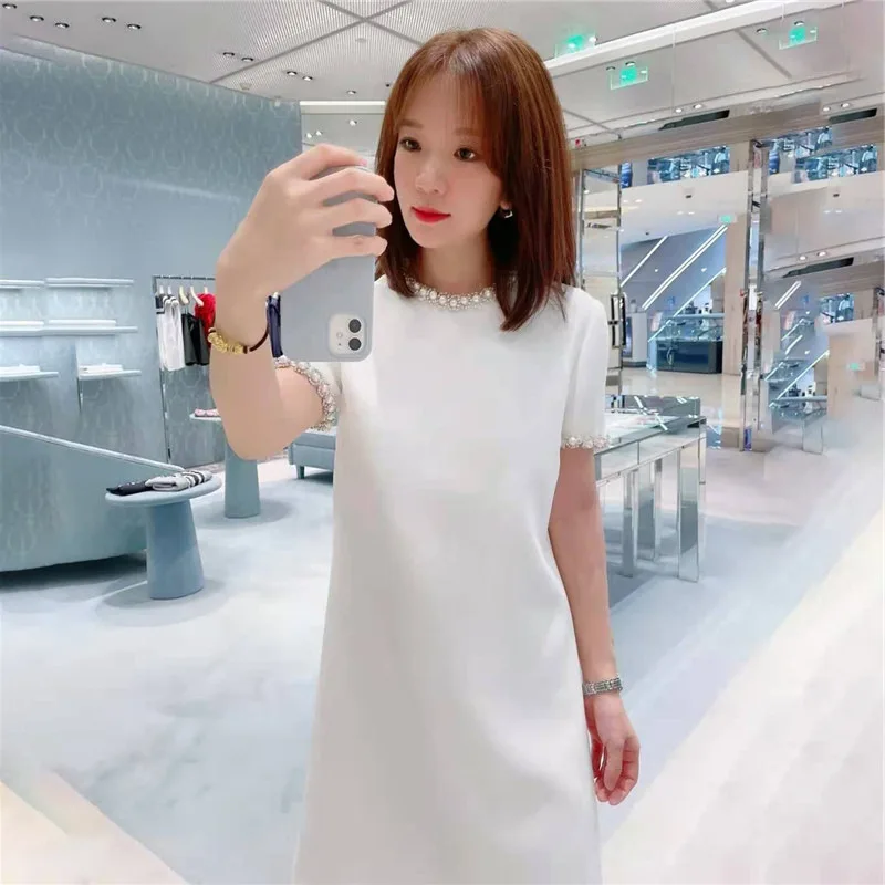 Женское платье с коротким рукавом, черно-белое облегающее вечернее платье с жемчужными стразы, весна 2021