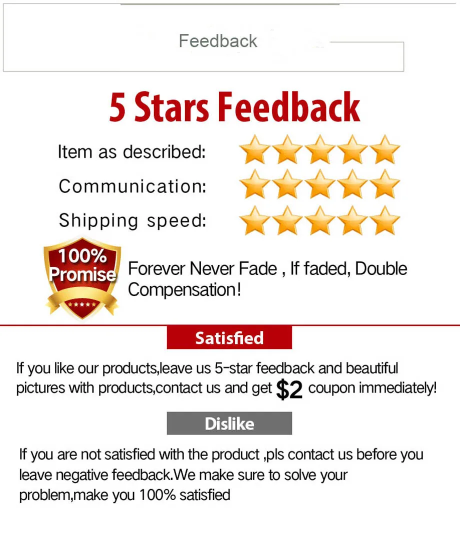 О сервисе: Мы делаем все возможное, чтобы удовлетворить покупателя, пожалуйста, свяжитесь с нами, если есть какие-либо проблемы с качеством, товар не получен и т. д., возврат или замена приемлемы. Пожалуйста, не оставляйте негативные отзывы перед контактом. Спасибо!