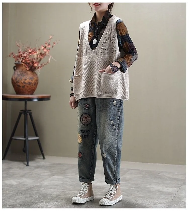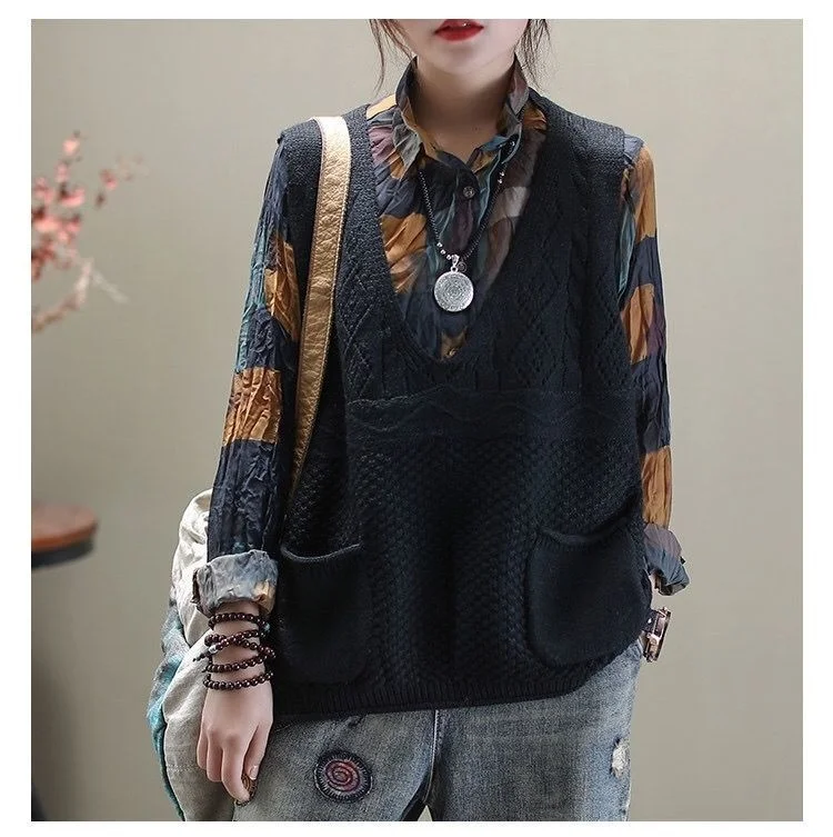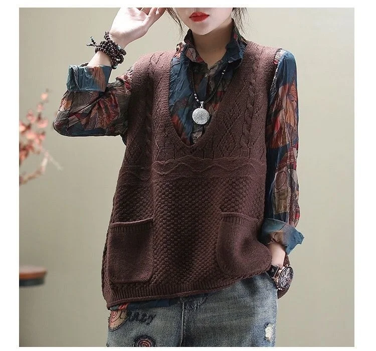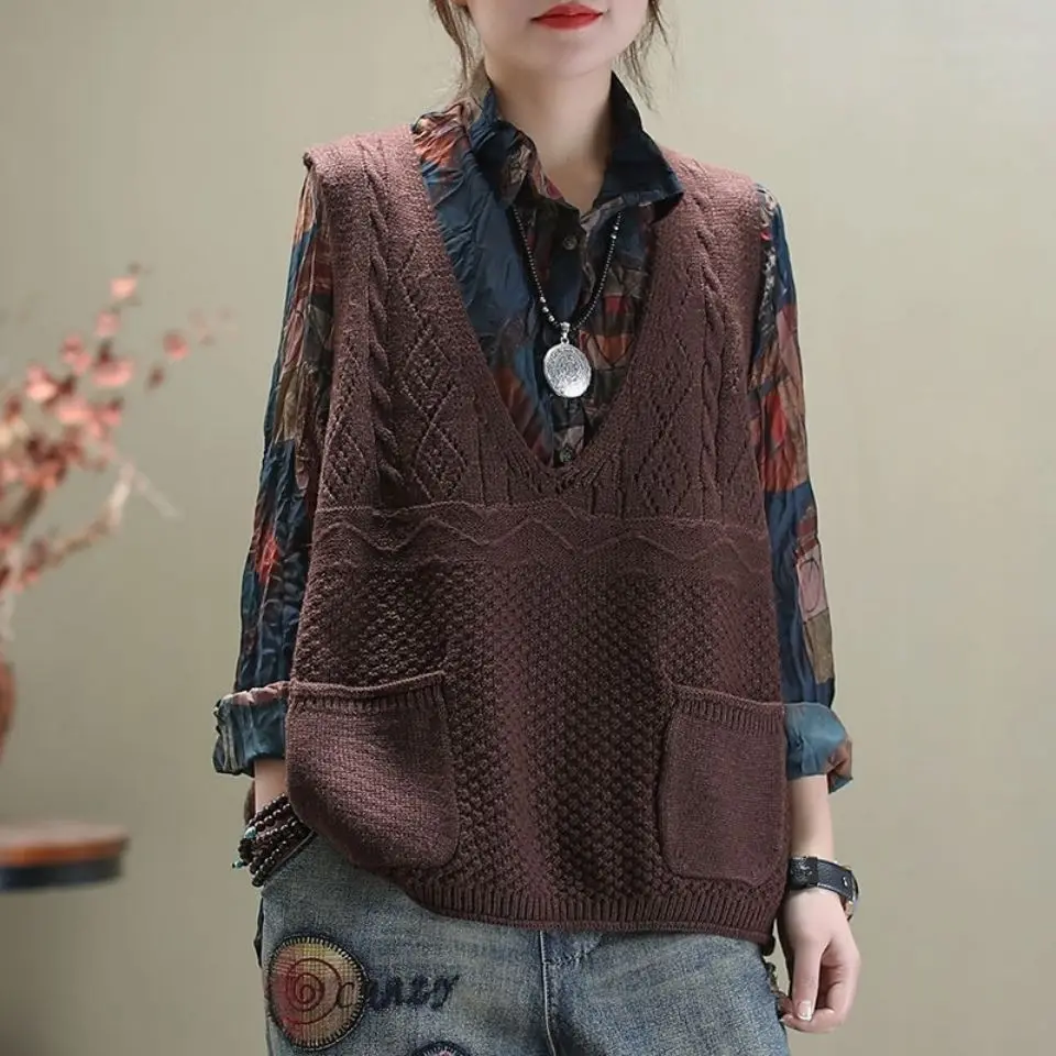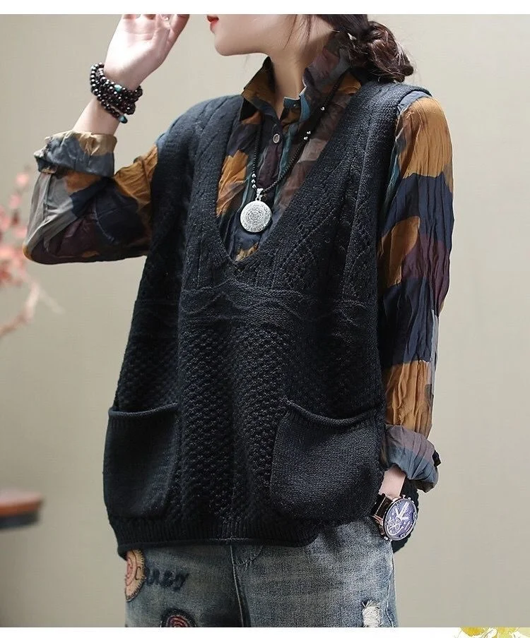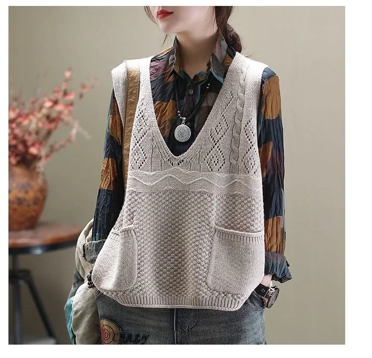 Жилет женский вязаный без рукавов, с V-образным вырезом
