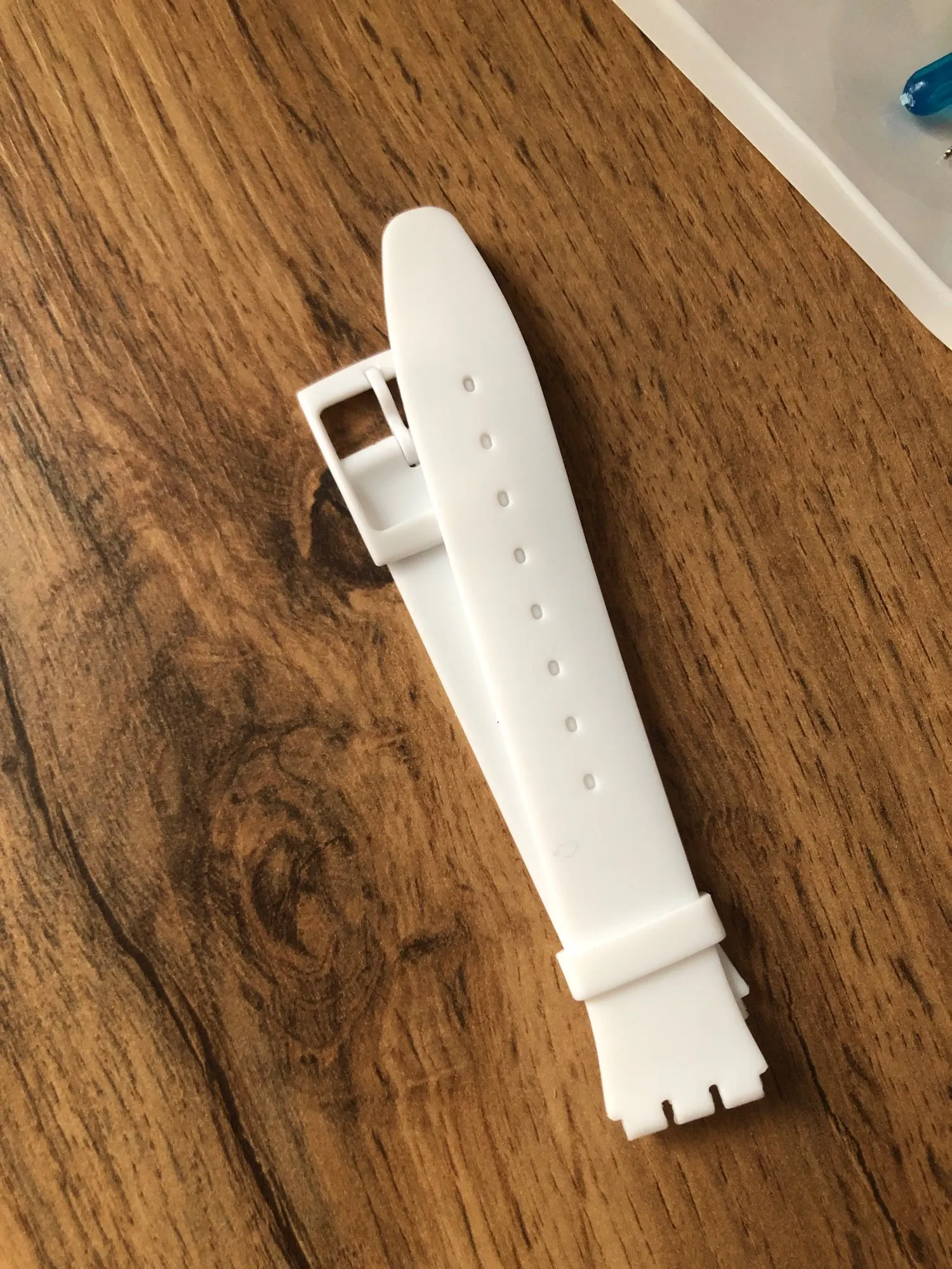 Прекрасный ремешок. Мягкий, гибкий и цвет кипельно белый, как и нужно было. Посылку получила в почтовый ящик