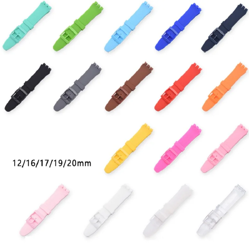 Силиконовый ремешок для часов Swatch, 16 мм, 17 мм, 19 мм, 20 мм, мягкий резиновый сменный ремешок для наручных часов, аксессуары для SWATCH
