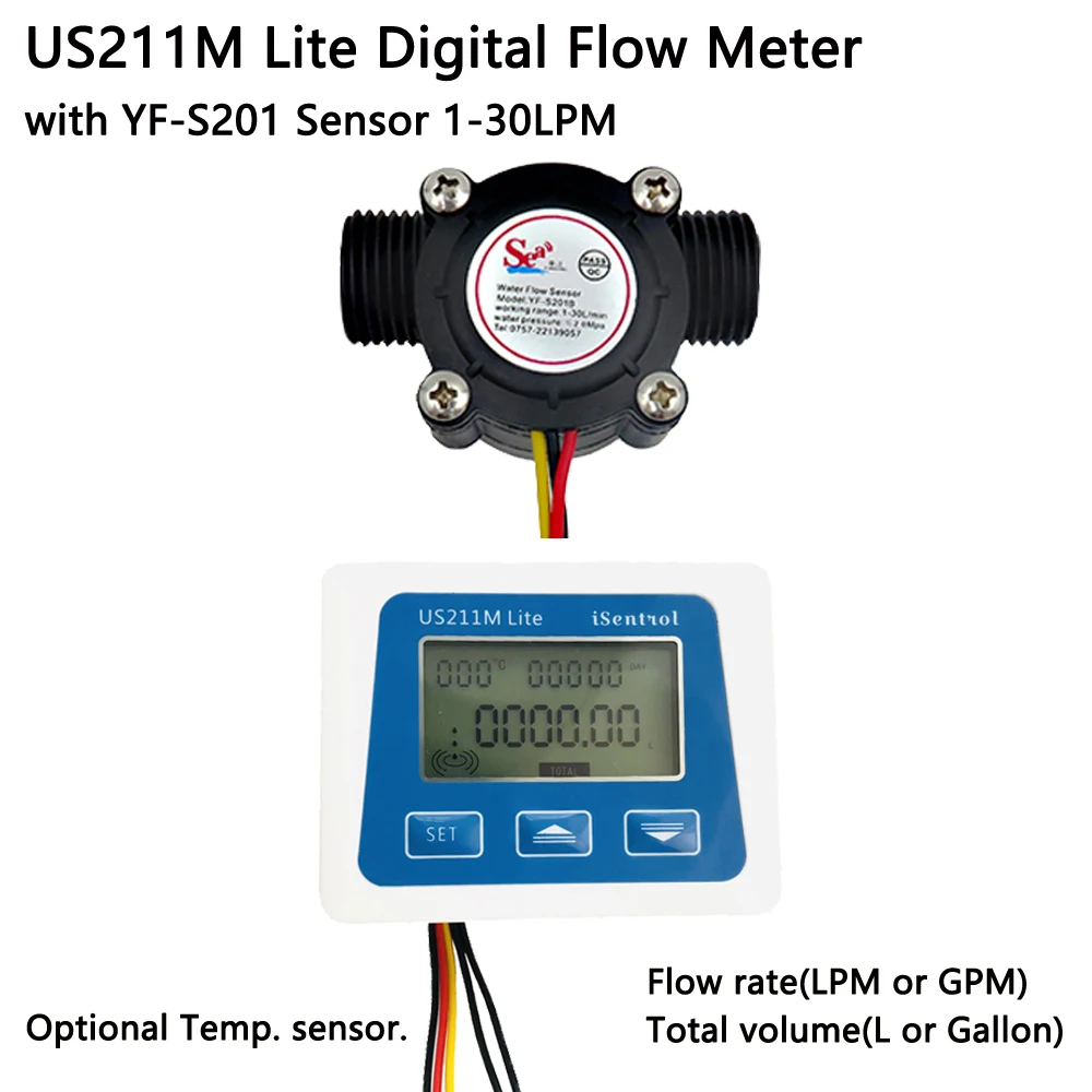 US211M Lite цифровой Портативный расходомер с YF-S201 потока Сенсор 1-30LPM Пластик Dijiang