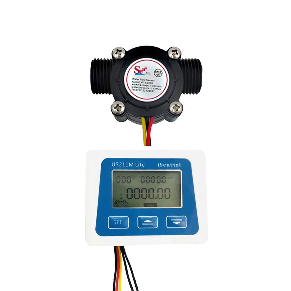 US211M Lite цифровой расходомер и BSP YF-S201 пластиковый датчик расхода воды 1-30L/M BSP G1/2 "турбинный расходомер