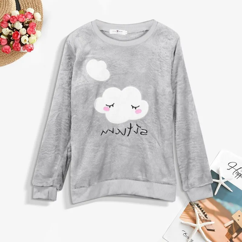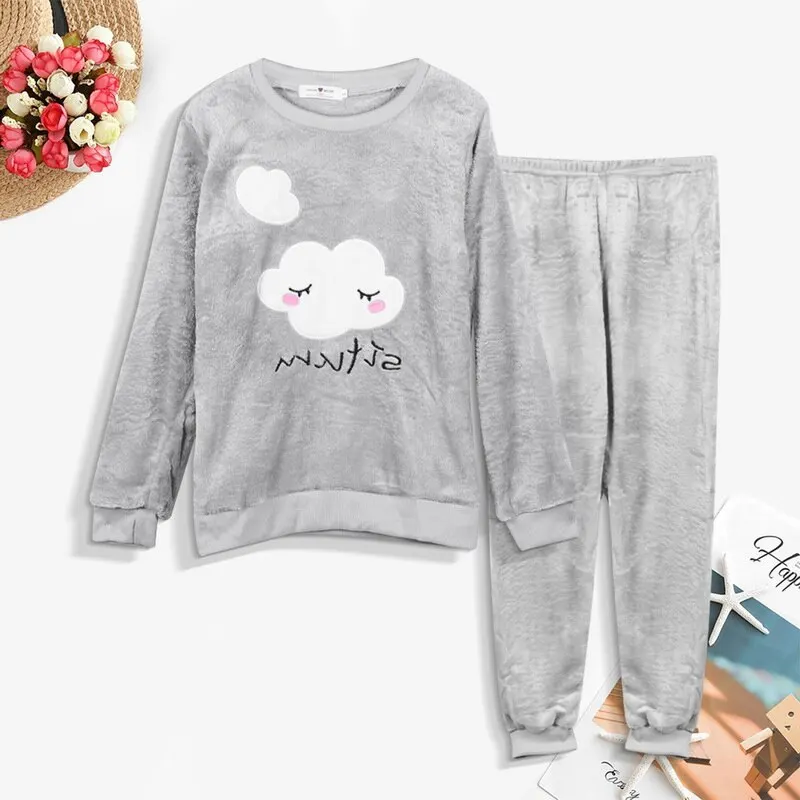 Пижамы для женщин, зимняя фланелевая одежда для сна с длинным рукав...