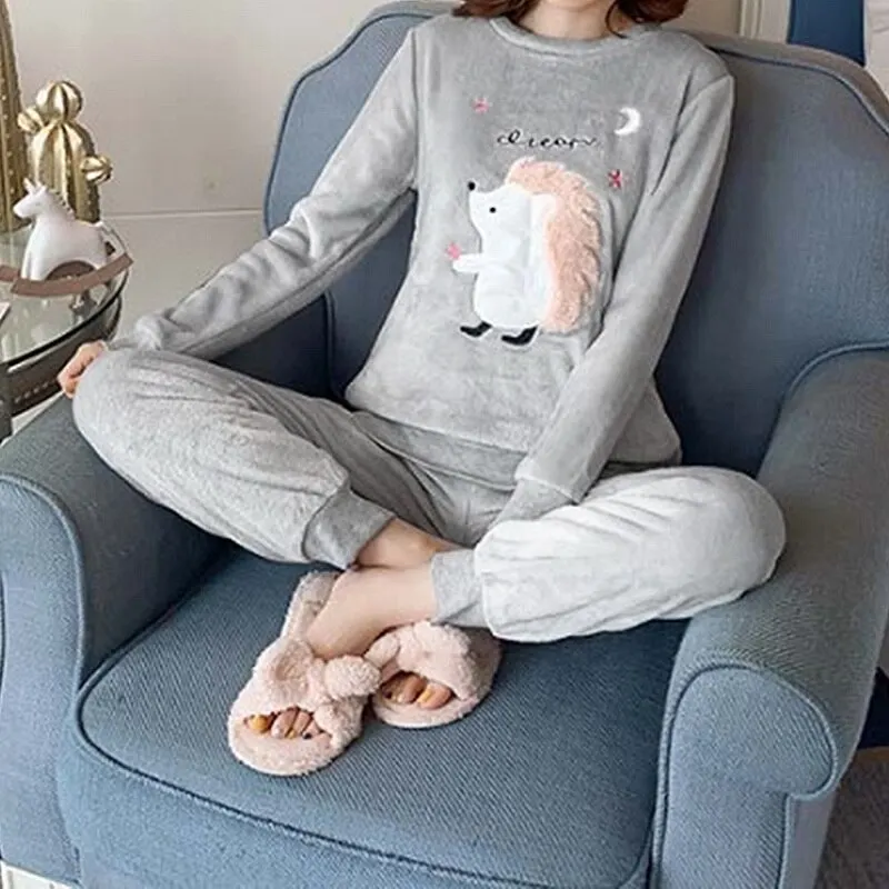 Мультяшные пижамы, теплая фланелевая женская утепленная Коралловая ...