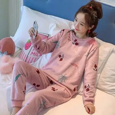 Зимняя женская Фланелевая пижама с длинным рукавом, утепленная, из бархата и кораллового флиса, женская зимняя Пижама, домашний костюм 2020