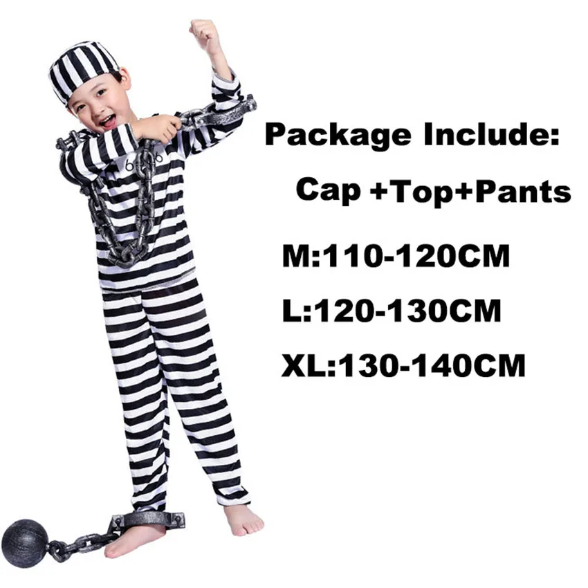 Детские костюмы в полоску, для карнавала, Хэллоуина, одежда для маленьких девочек и мальчиков, ролевые игры, зомби, косплей заключенного