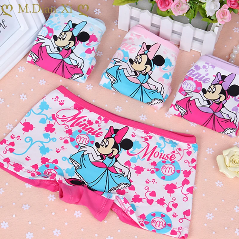 Трусы для девочек, хлопковые, с рисунком Минни, 4 шт.лот