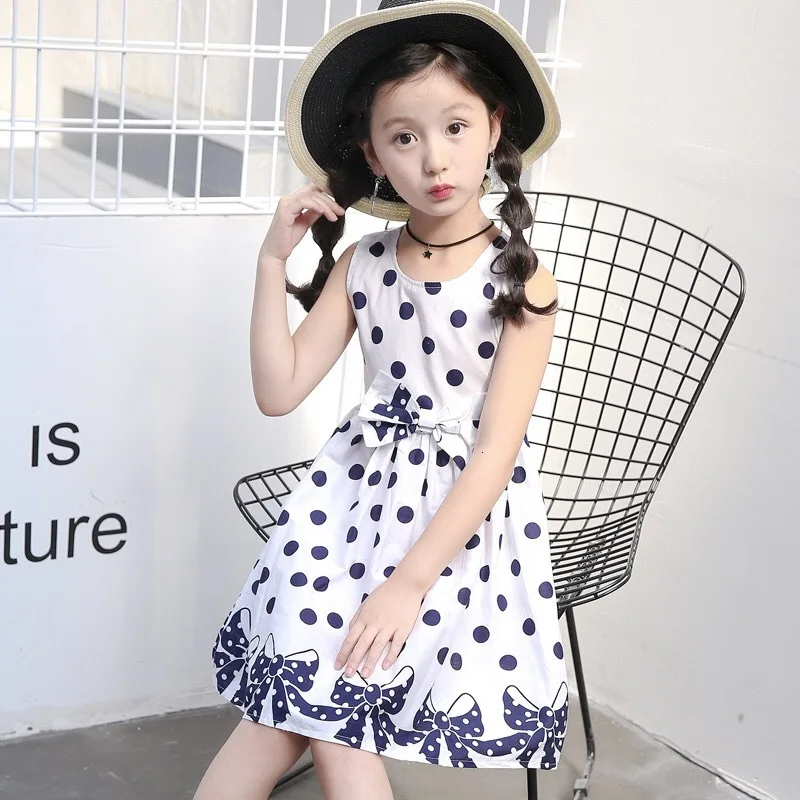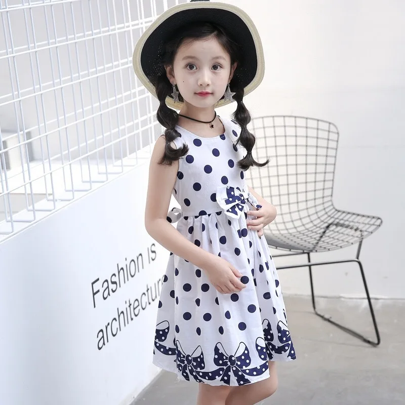 От 3 до 12 лет в горошек для девочек; Платье в горошек для девочек 2019 Летнее бальное платье без рукавов, с бантом, раздел-детские свитеры; Одежда для сна; Платья принцесс; Детская одежда;