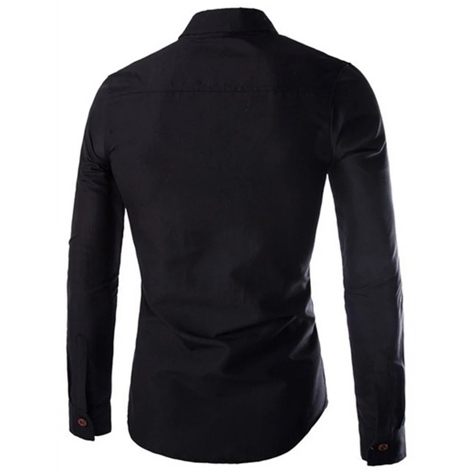 Мужская однобортная деловая рубашка, Повседневная приталенная рубаш...