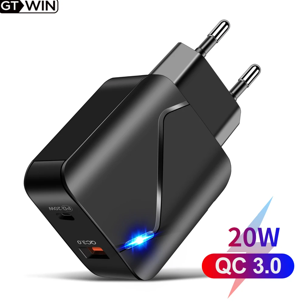 Новинка, высококачественное зарядное устройство GTWIN для IPhone Samsung PD18W QC3.0 USB, быстрая зарядка, двойной порт, светодиодное зарядное устройство для путешествий