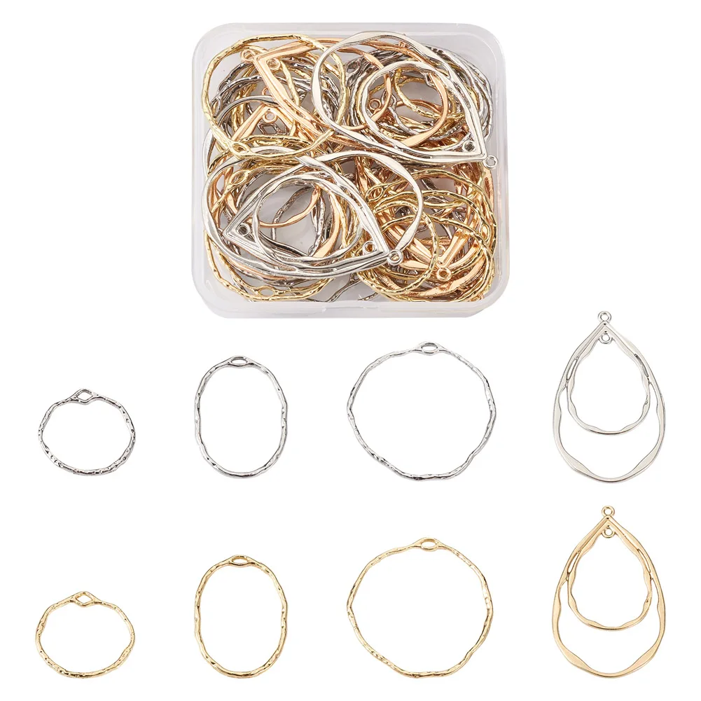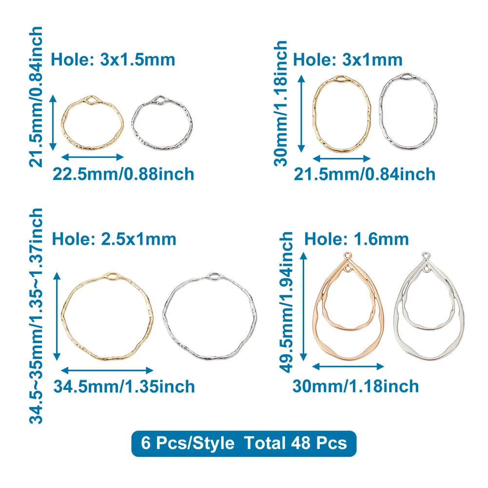48 шт.кор. ди-кулоны из нержавеющей стали кольцо в форме сердца висячие серьги в виде геометрических фигур рамка набор сделай сам для УФ-отверждаемая эпоксидная смола с тисненным изображением цветка для изготовления ювелирных изделий