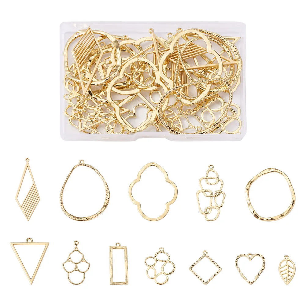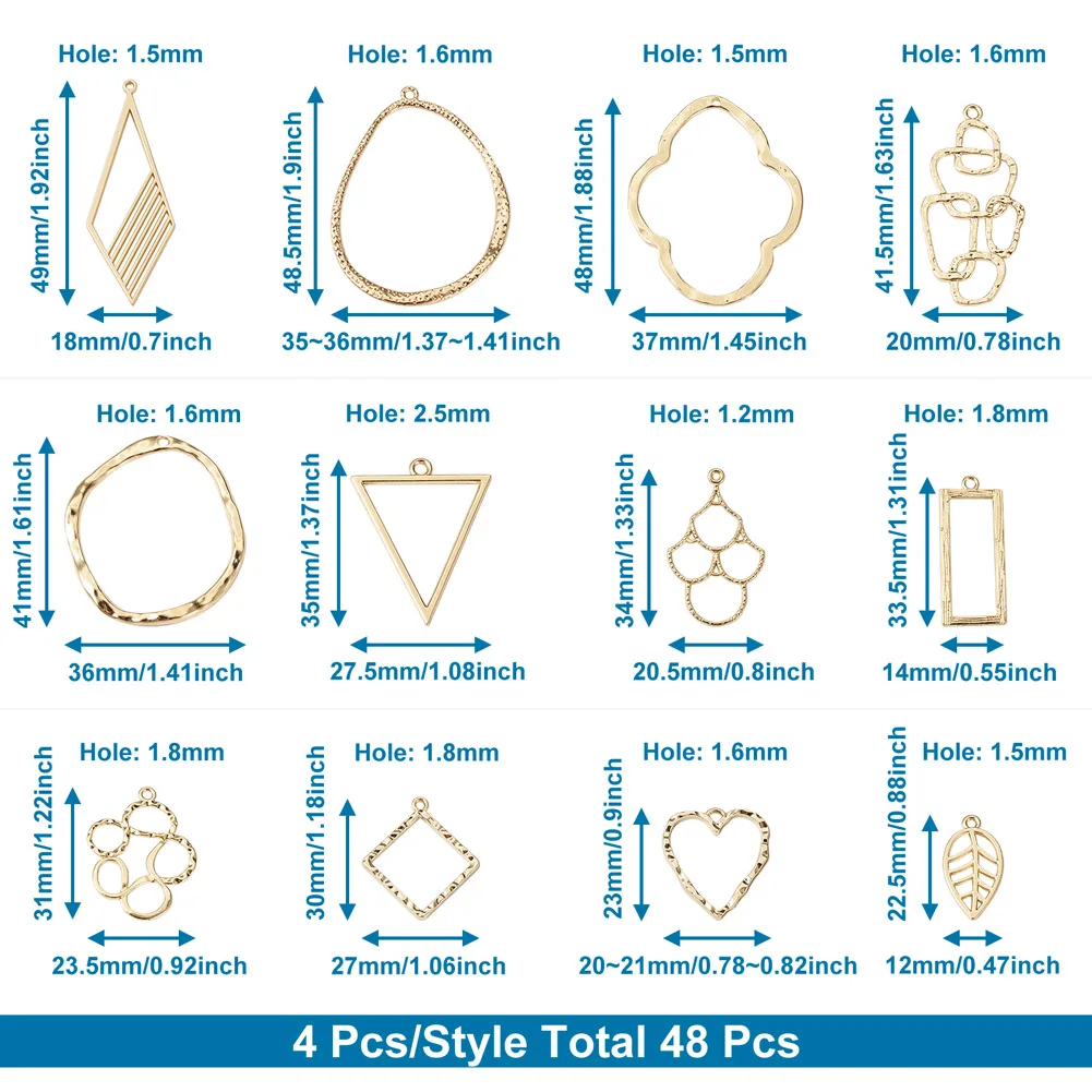 48 шт./кор. ди-кулоны из нержавеющей стали кольцо в форме сердца висячие серьги в виде геометрических фигур рамка набор «сделай сам» для УФ-отверждаемая эпоксидная смола с тисненным изображением цветка для изготовления ювелирных изделий