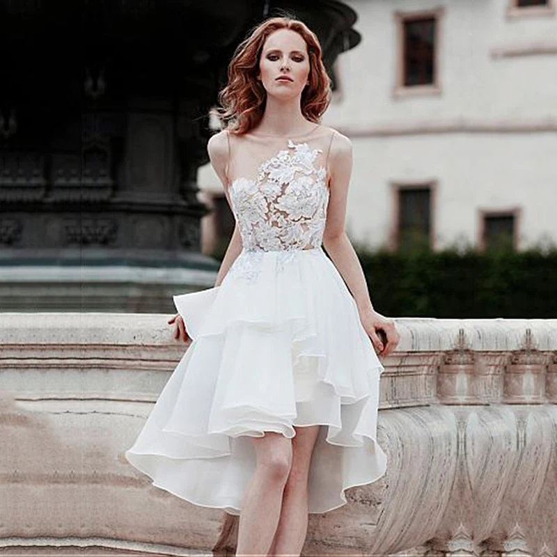 Короткое свадебное платье 2021 кружевные аппликации Hi-Lo мини пляжные платья невесты богемные Свадебные платья на заказ robe de mariee