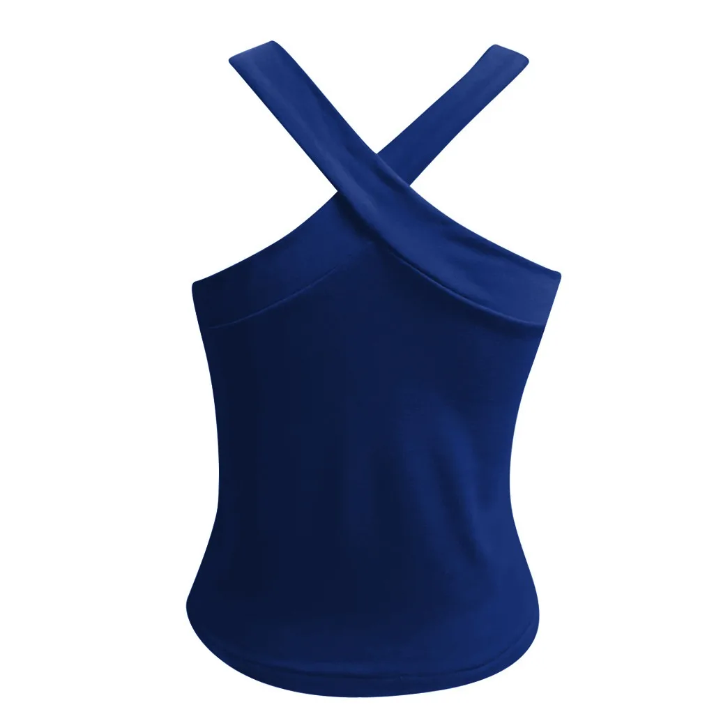 Женская Сексуальная Пляжная мода крест без рукавов сплошной жилет блузка полые рубашки топы