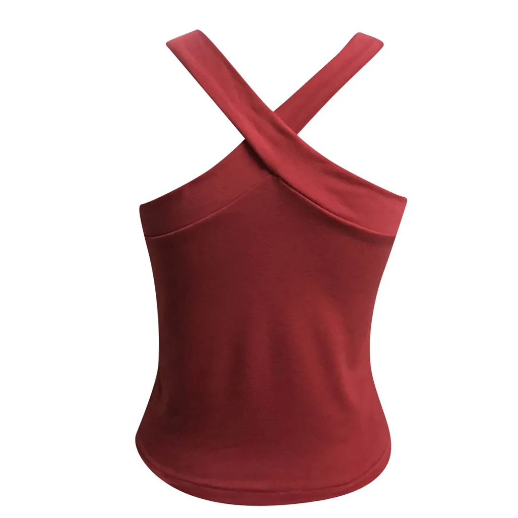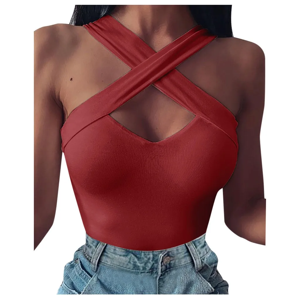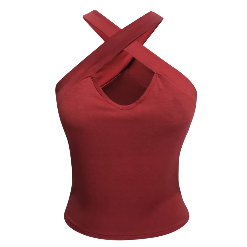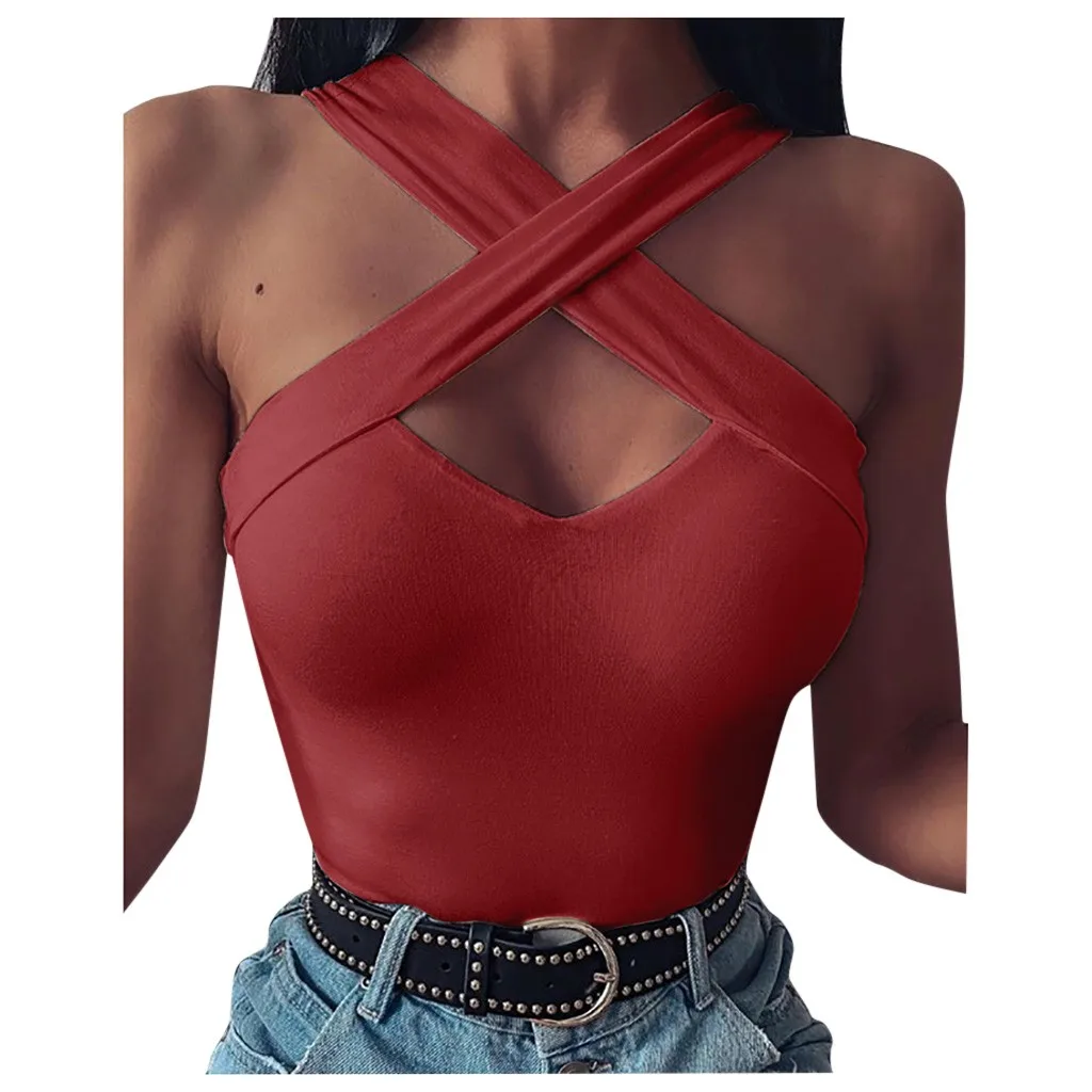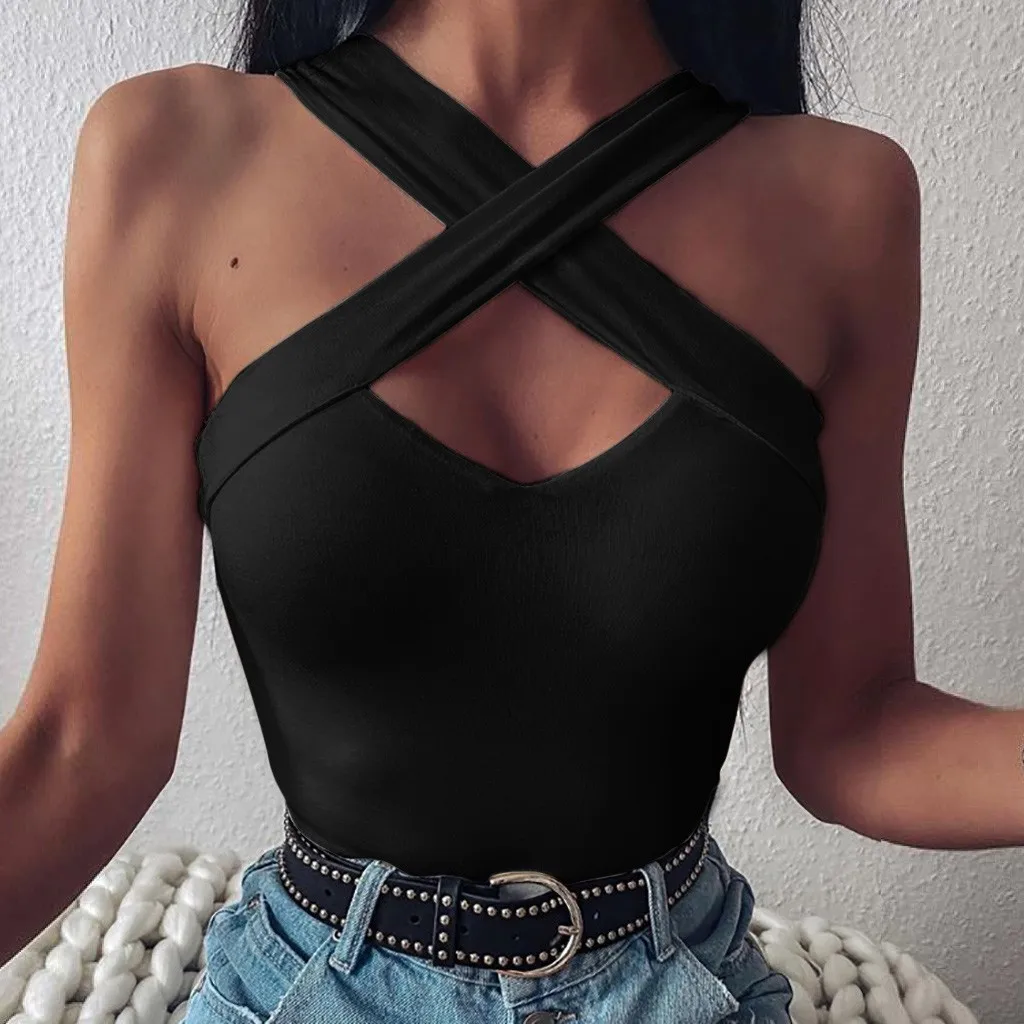Майка женская однотонная с перекрестными ремешками, модный пикантный пляжный топ без рукавов, ажурная рубашка, повседневный топ