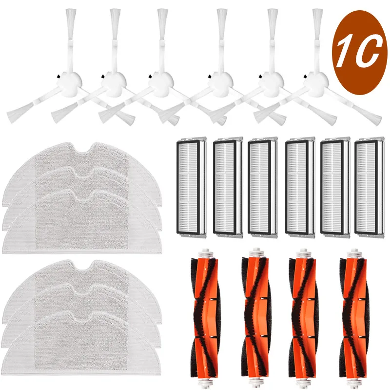 Комплект запчастей Certer для робота-пылесоса Xiaomi SKV4093GL, основной ролик + боковая щетка + Hepa фильтр + салфетка для мытья полов