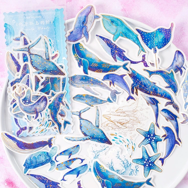 60 шт.компл. киты на острове, золотые наклейки для стемпинга, Набор стикеров сделай сам, дневник, дневник, украшение, альбом, скрапбукинг