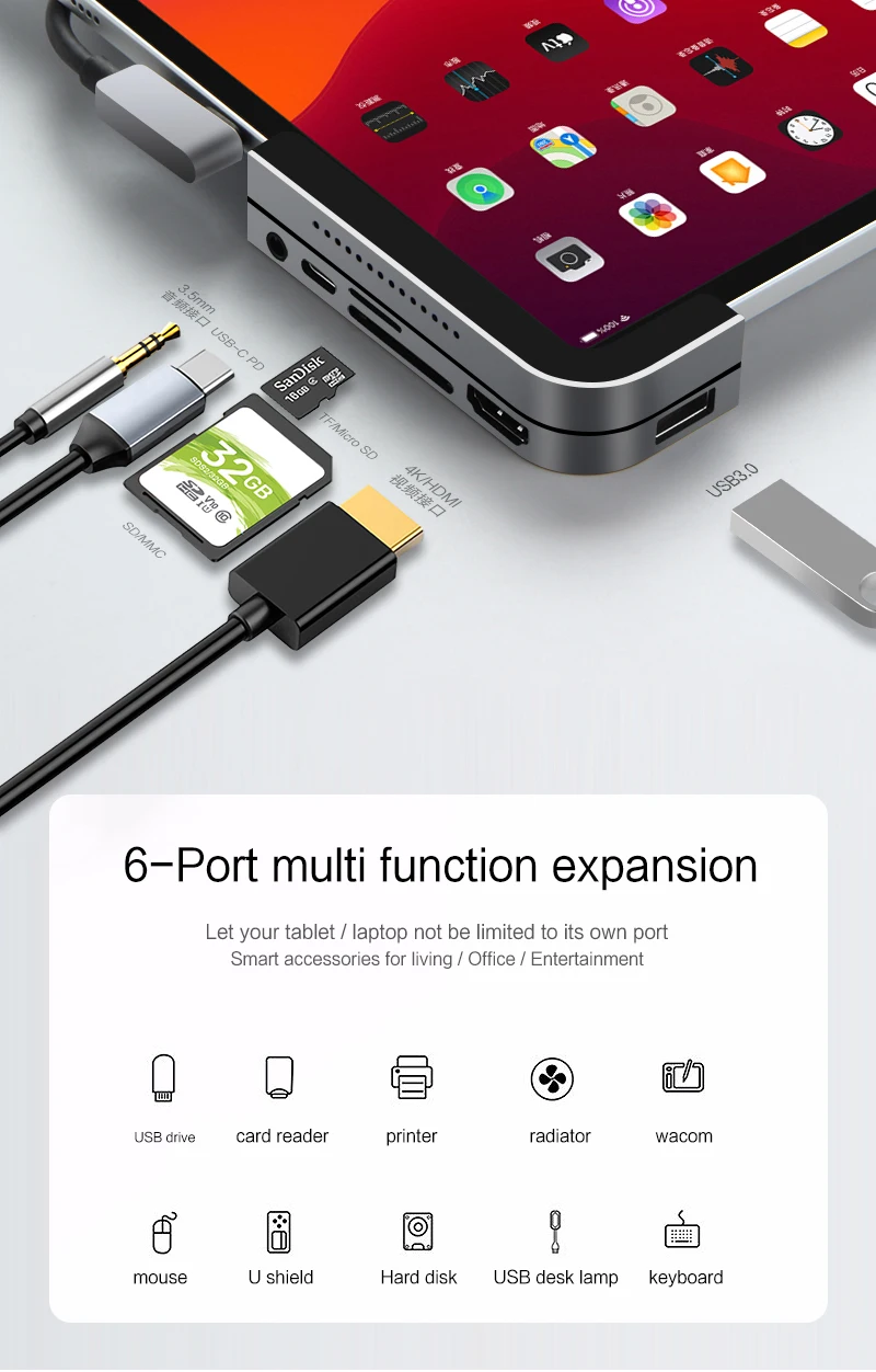 USB C концентратор USB для iPad Pro Air 4 10,9 air4 планшет Вид аксессуаров C USB 3,0 HDMI кард-ридер 3,5 мм адаптер док-станция для USB-C мульти Порты и разъёмы