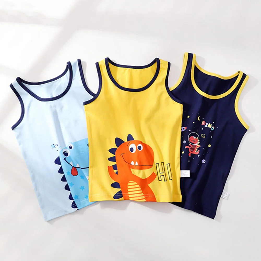 3 шт./компл., нижнее белье для подростков, детский укороченный топ, детское нижнее белье, футболка без рукавов, летние хлопковые топы для девочек-подростков с рисунком динозавра