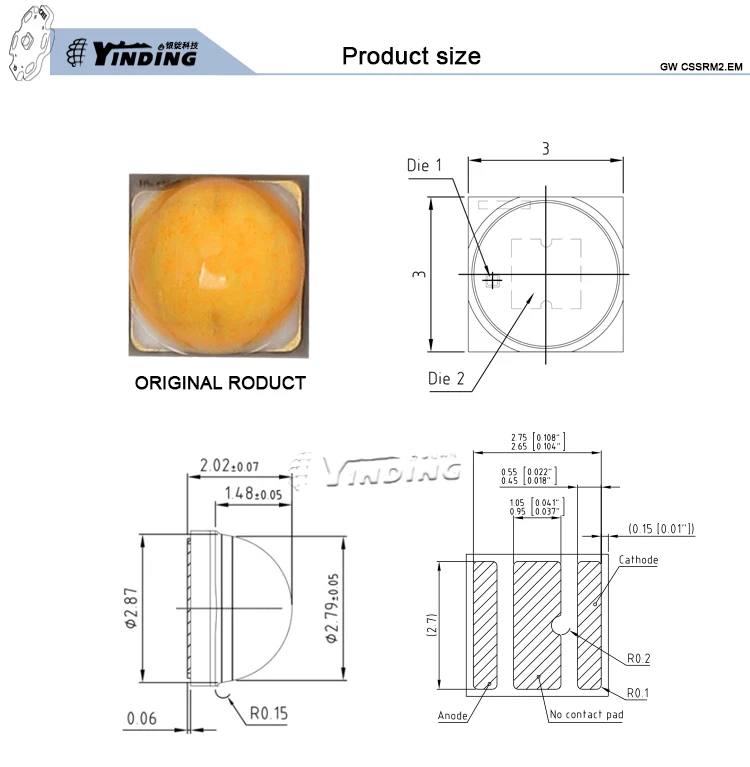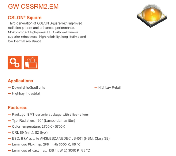 10 шт. GW CSSRM2.EM 5 Вт высокой мощности 2700K теплый желтый светильник вниз светильникТочечный светильниксветильник Промышленный светильник на светодиодах в надутом виде Бесплатная SMD