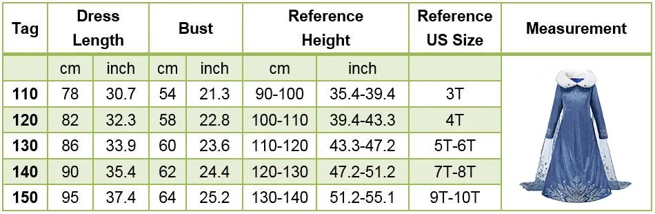Страна: US Color: Elsa 10 Kid Size: 3T Доставка: Standard Shipping 03.01.2023