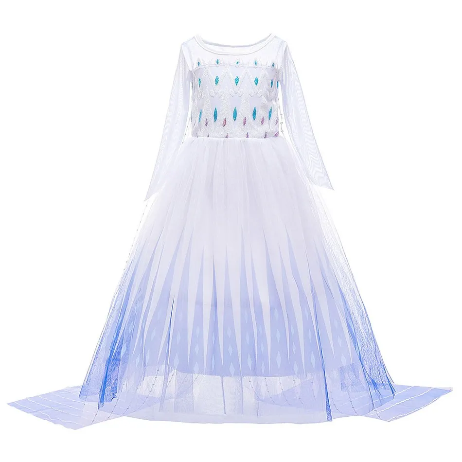Детское модное Стильное нарядное платье принцессы костюм Эльзы вечерние карнавальный белое платье для девочек; Детская одежда на Рождество и день рождения для костюмированной вечеринки Принцесса Белль Снежинка для детей Vestidoes