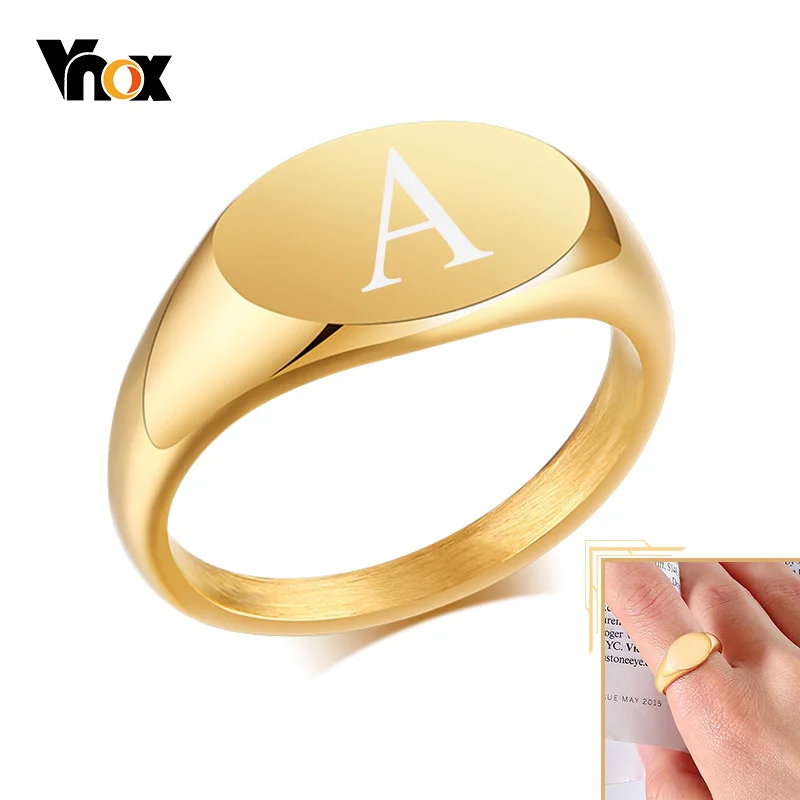 Выгравированное кольцо Vnox для женщин, однотонное кольцо-штамп из нержавеющей стали 9 мм начального золотого цвета, минималистичное металлическое название, ювелирный подарок