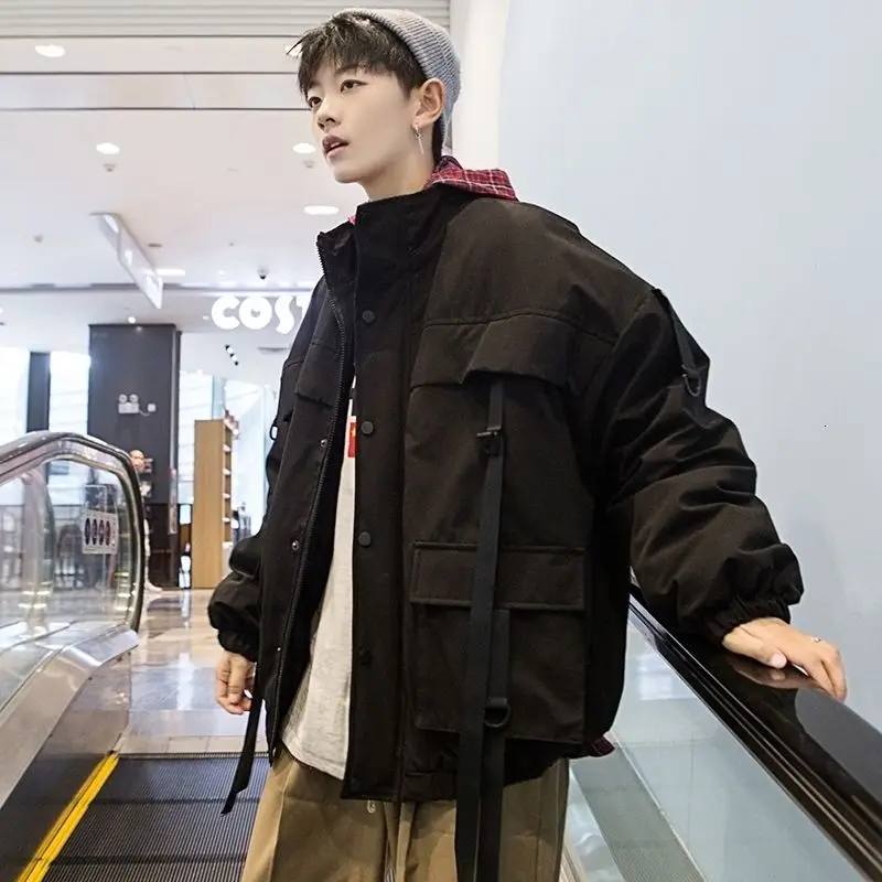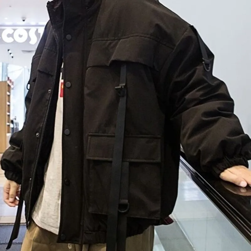 Мужская повседневная куртка, зимняя утепленная куртка-карго с воротником-стойкой и множеством карманов
