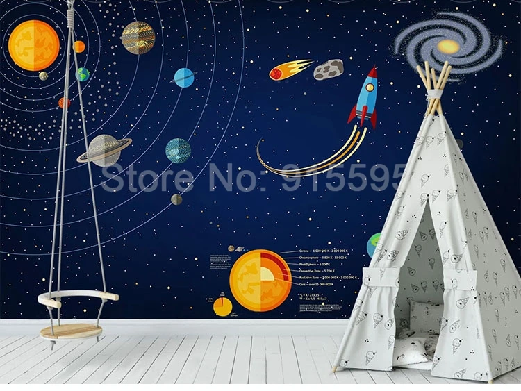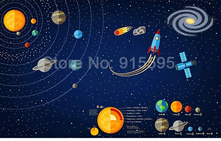 Настенная 3D фотобумага на заказ, Настенная роспись космическим кос...